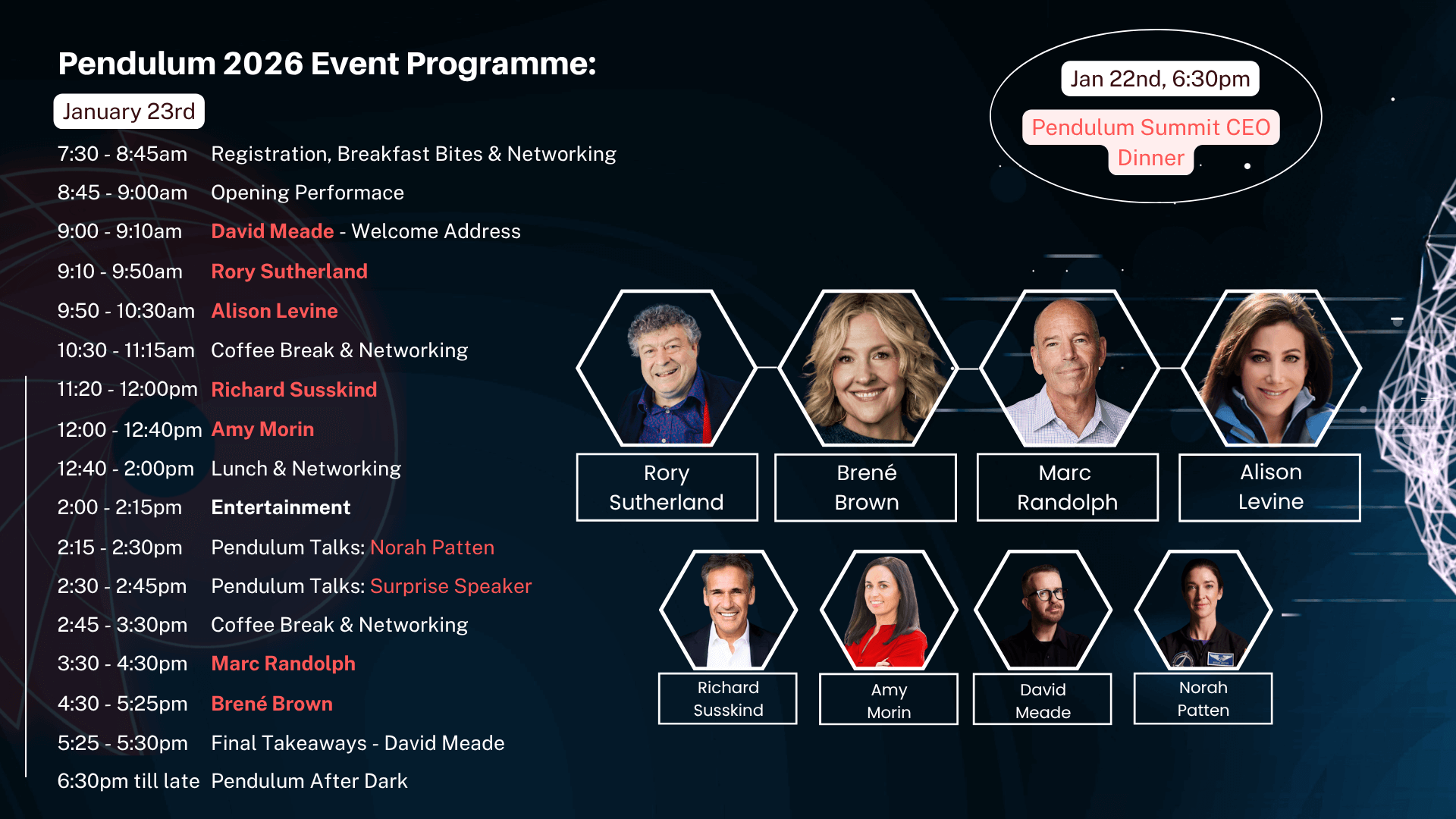 Pendulum Summit is the world’s no.1 business and leadership event, attracting top-tier executives, entrepreneurs, and thought leaders from across the globe. It provides attendees with unparalleled insights into leadership, peak performance, employee resilience, and the future of work.